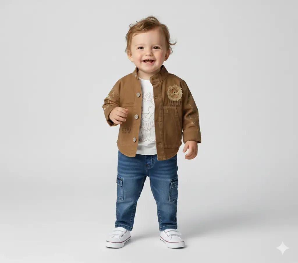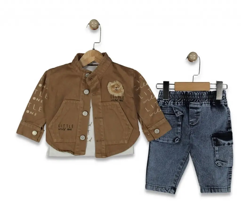 9-24 Ay Little Aslan Baskı Ceketli 3lü Takım