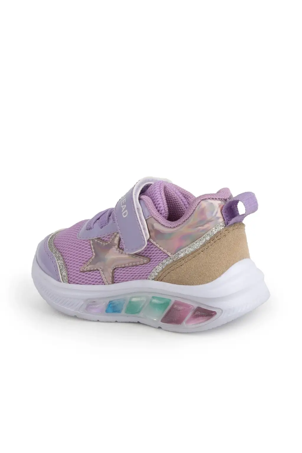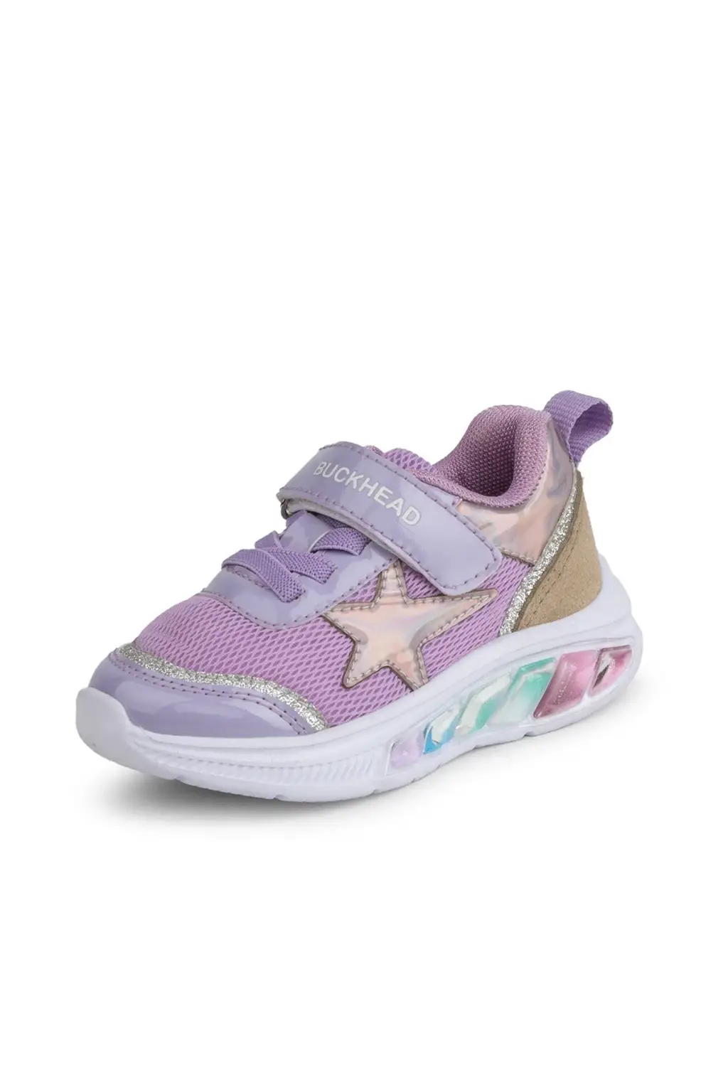 _"Çocuklar için eğlence ve konfor bir arada! Buckhead Star Buck4468 - Lila, LED ışıklı tabanı sayesinde her adımı eğlenceli hale getiriyor. Şık siyah ve turuncu renk kombinasyonu ile hem spor hem de günlük kullanım için mükemmel bir seçenek. Hafif yapısı ve nefes alabilen üst yüzeyi, ayakların gün boyu rahat kalmasını sağlar.