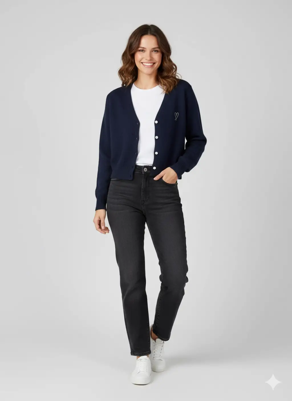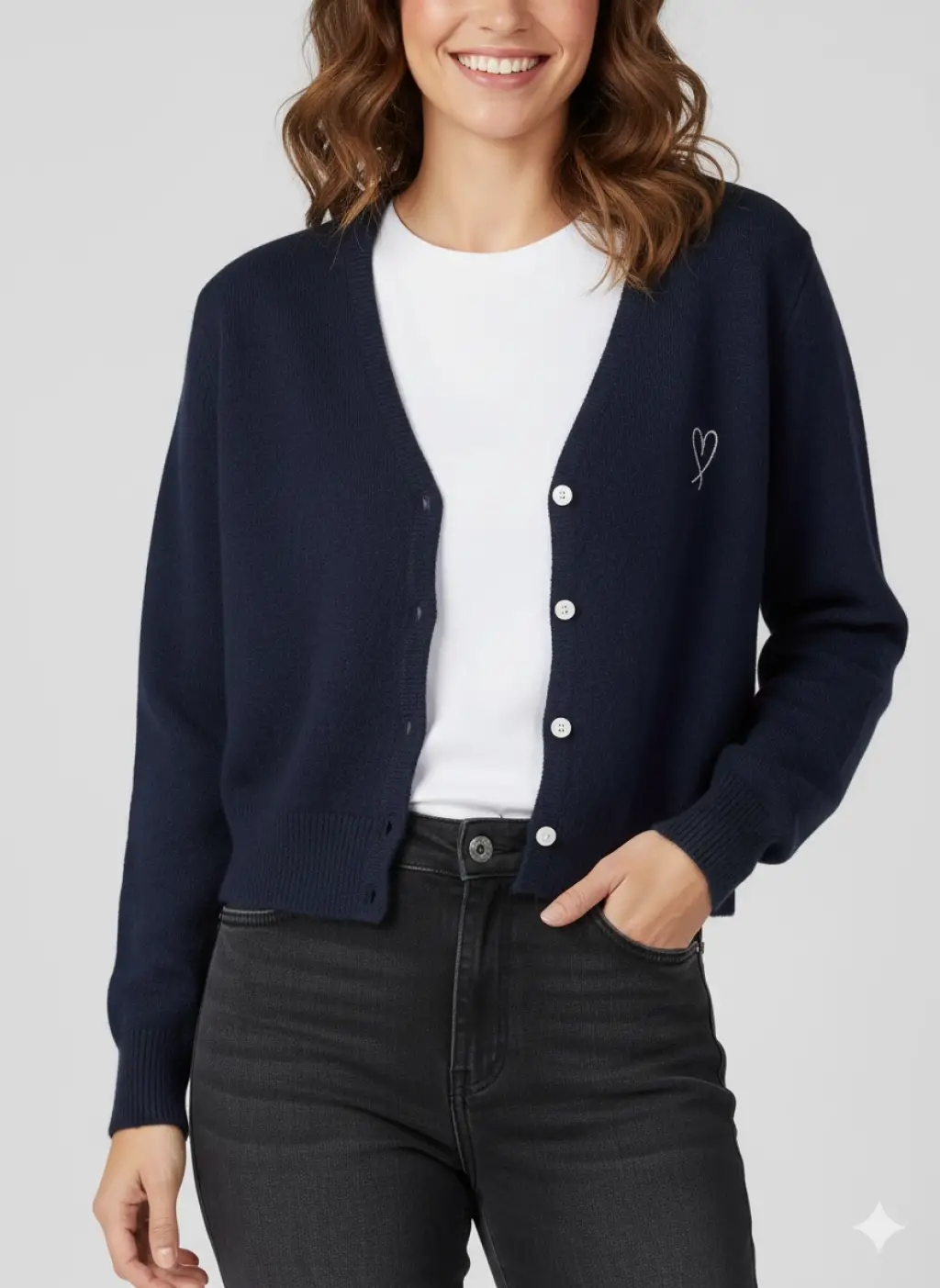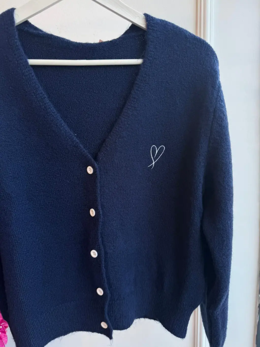 Garson Boy Lacivert Kalp Nakışlı Hırka