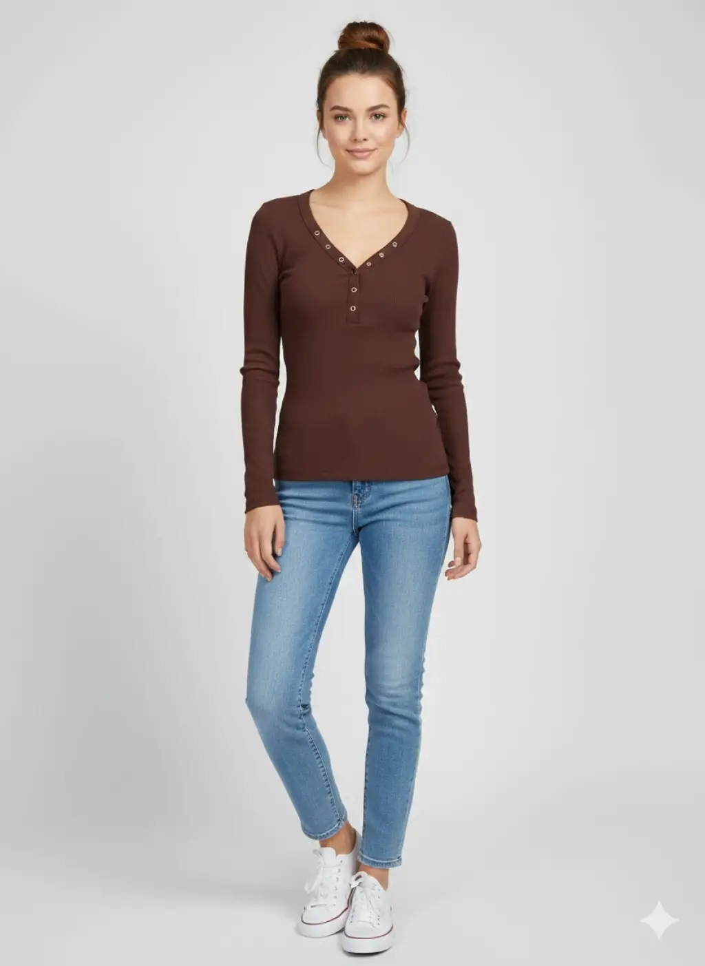 Garson Boy Kahverengi Çıtçıtlı Bluz